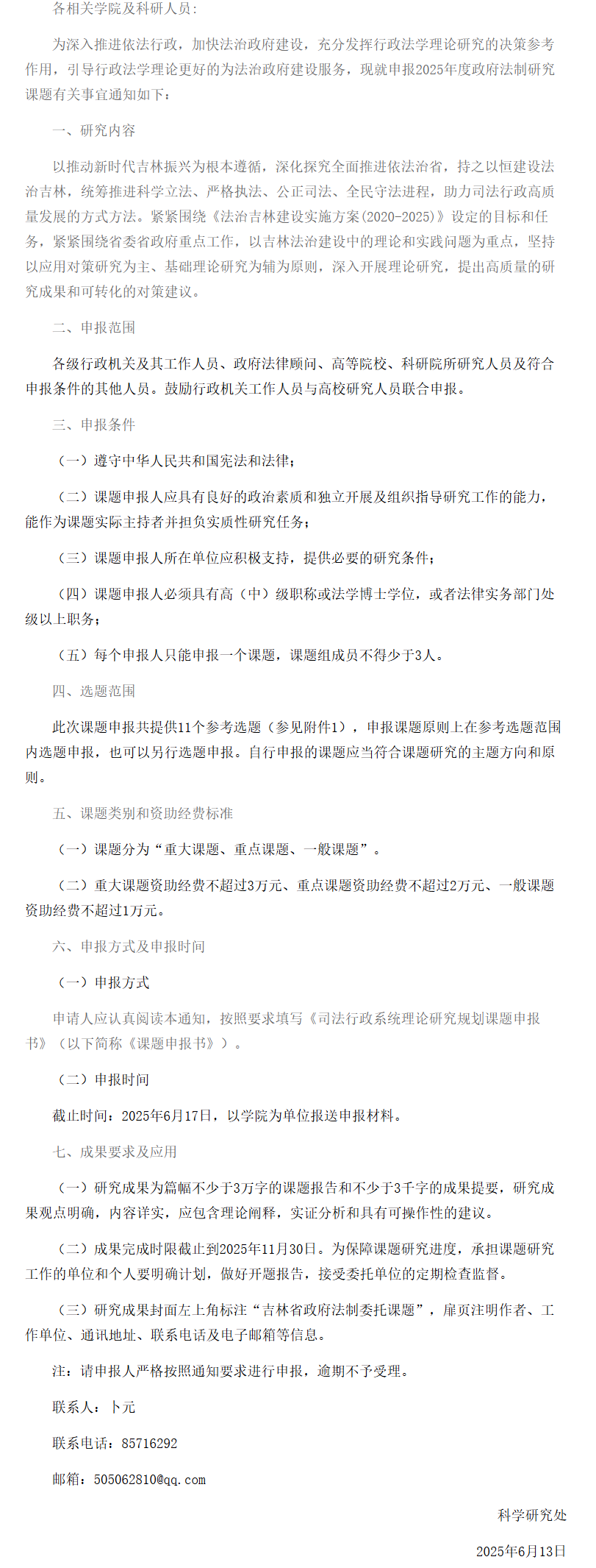 吉林省司法厅关于申报2025年度政府法制研究课题的通知