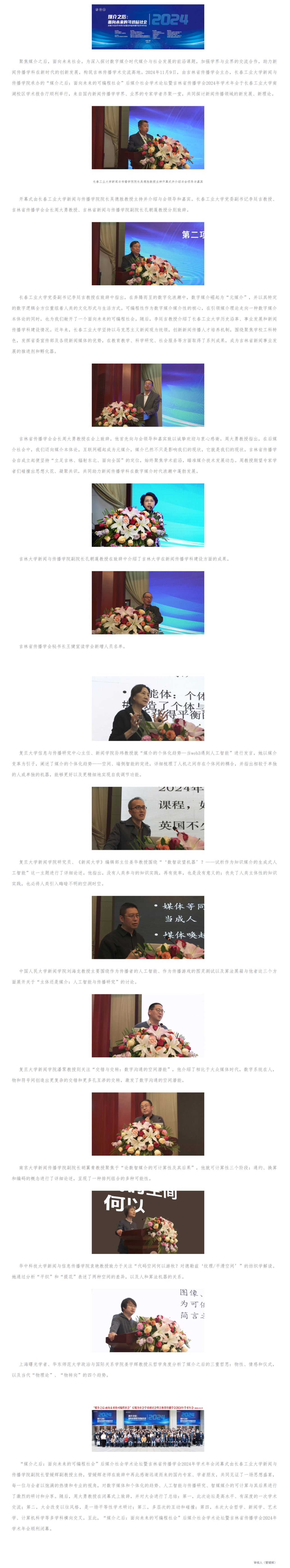 “媒介之后:面向未来的可编程社会” 后媒介社会学术论坛暨吉林省传播学会2024年学术年会成功举行