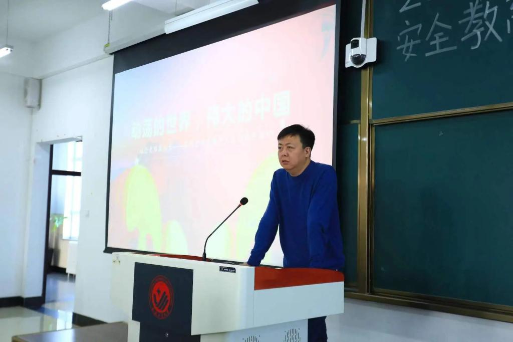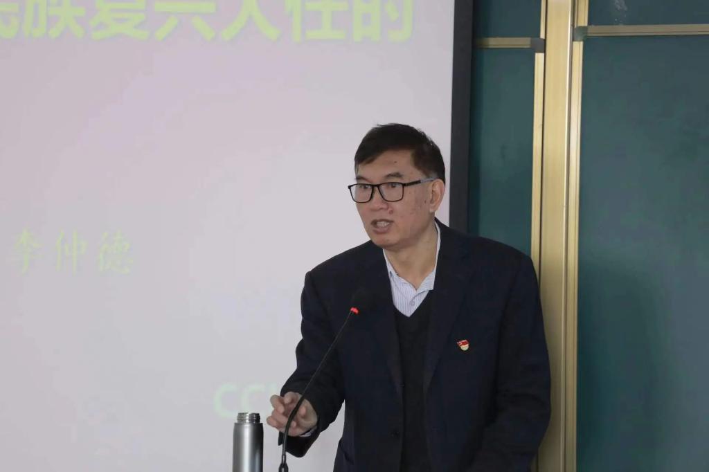 原党委书记李仲德进行讲授,他希望能让同学们正确认识历史方位的同时明确当今时代下,当代大学生所肩负的历史使命。他主要讲了两个大局:第一个大局——世界百年未有之大变局;第二个大局——中华民族实现伟大复兴的战略全局。最后,他也就同学们成为担当民族复兴大任的时代新人提出了展望:要树立远大理想;高质量发展;提高身体素质,面对变局可以挺膺担当,为国家做出贡献!