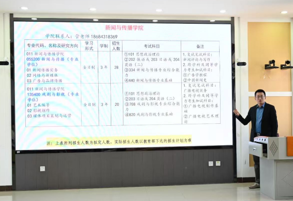新闻与传播硕士学位点负责人于欧洋老师、戏剧与影视学位点负责人尤洋老师,分别就学科特色、培养体系与发展路径展开深入讲解,从理论根基到行业前沿,从课程架构到个人成长,为在场学生勾勒出清晰的学业蓝图。