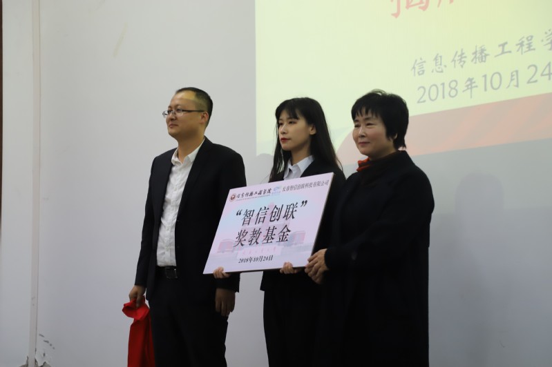 信息传播工程学院与长春智信创联科技有限公司于教图楼八楼会议室成功举办了“智信创联”奖教基金揭牌仪式。此次参加揭牌仪式的有:副校长王颖、校友工作办公室主任兼对外联络办公室主任王春阁、长春智信创联科技有限公司总经理王慧家校友、学校领导班子、教学秘书、办公室主任、数字媒体技术全体专业老师、其他部门教研室主任、副主任、书记、部分学生代表,会议由学院党委副书记倪宏哲主持。