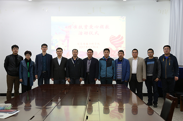 新闻网讯(通讯员刘永帆)4月26日下午3点,信息传播工程学院举行“精准扶贫爱心捐款活动仪式”,校扶贫办副主任校工会副主席田宏伟、校团委副书记仲崇利、校驻镇赉县六合村第一书记郑洪斌及学院党政领导班子成员、各系教师代表、各学生团支部代表参加了会议。会议由院党委副书记寇建新主持。