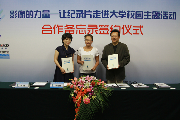 新闻网讯(通讯员宫春洁)由中央电视台纪录频道、中国高等院校影视学会发起的“影像的力量——让纪录片走进大学校园”大型主题活动,于9月24日在北京正式启动。我校信息传播工程学院副院长宫春洁、“三创”影视实训基地负责人孔庆东老师应邀参加此次活动,并代表学院与中央电视台、中国高校影视学会签署合作备忘录。