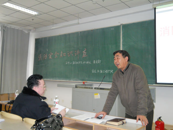 保卫处防火科科长裴国勤主讲,学院全体教师和主要学生干部参加了本次讲座。