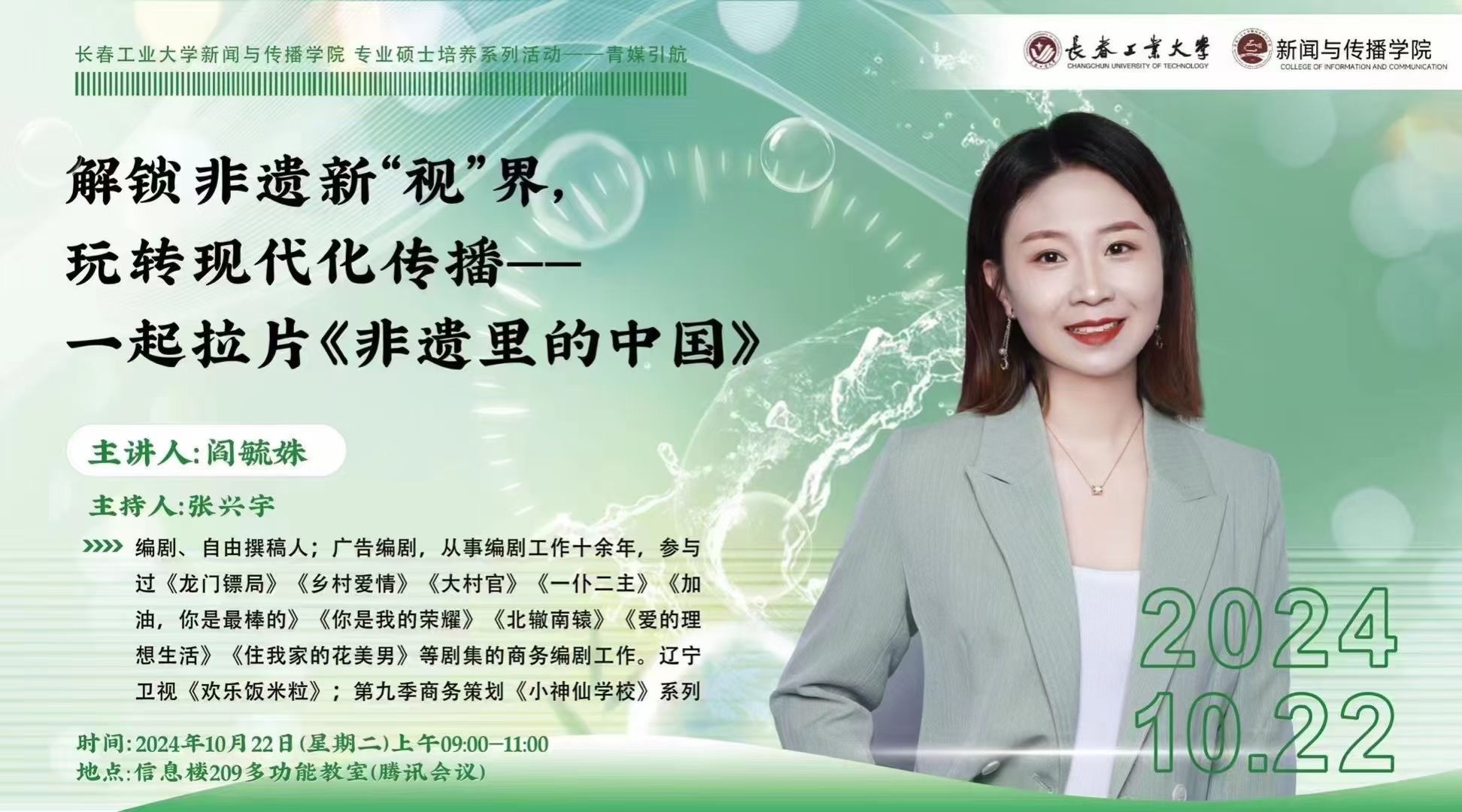 邀请到编剧、自由撰稿人阎毓姝,开展了题为《解锁非遗新“视”界 玩转现代化传播》专题讲座。该讲座由仙女宫
