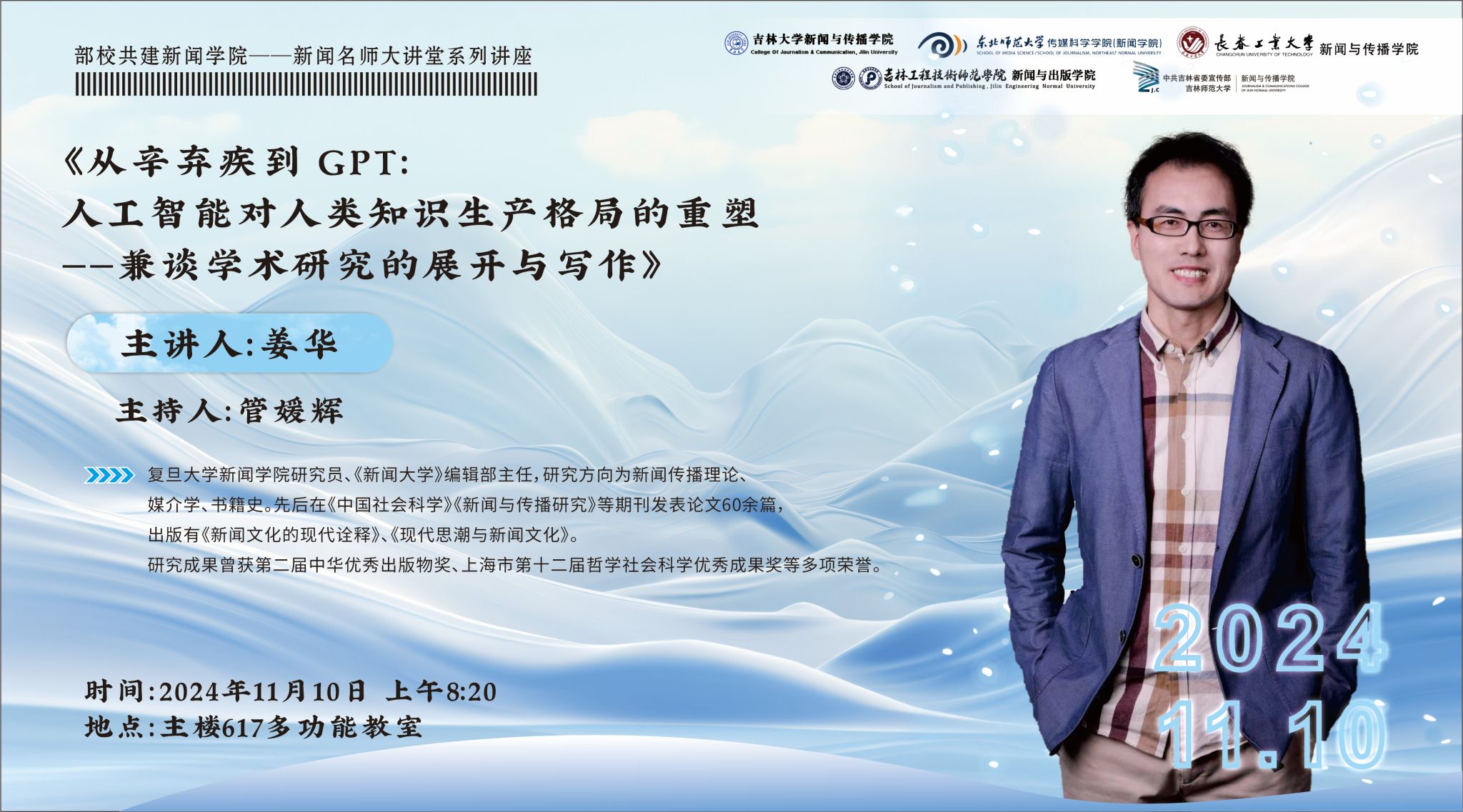 邀请到复旦大学新闻学院研究员、《新闻大学》编辑部主任姜华老师开展了题为《从辛弃疾到GPT:人类知识的生成与演变——兼谈学术研究的展开与写作》的学术讲座。此次讲座由仙女宫